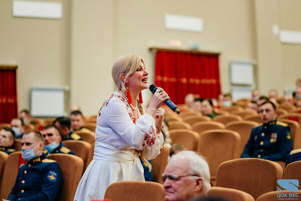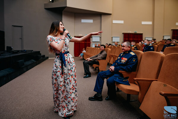 С праздником военнослужащих ВКС поздравила творческая группа ЦОК ВКС в составе: вокалистов Любовь Шепилова, Артур Гари, Олег Леонтьев, лауреаты всероссийских и международных конкурсов Маргарита Князева, Ольга Рыбникова, Люция Крымская и младший состав Мастерская голоса “Путеводная звезда” клубного формирования “Взлет” ЦОК ВКС (рук. Светлана Келина).